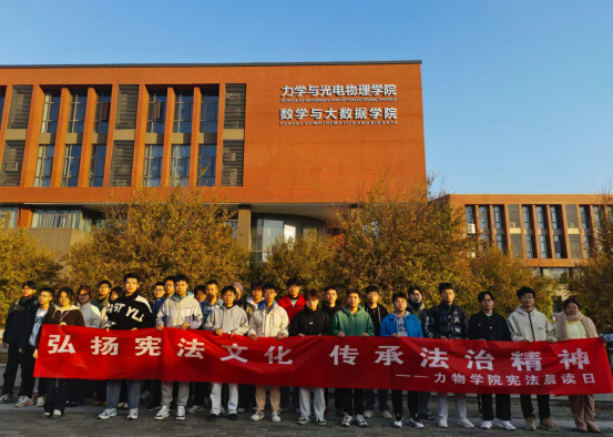 活动在学院报告厅和广场同步进行,清晨的阳光洒落在校园的每一个角落,为活动增添了几分庄重与神圣。学生们手持宪法文本,在辅导员和学生代表的带领下,一字一句、认真细致地朗读宪法原文节选。洪亮且整齐的诵读声在校园上空久久回荡,不仅展现了学生们对宪法的敬畏之心,更让他们深切地感受到了宪法的庄严与神圣。