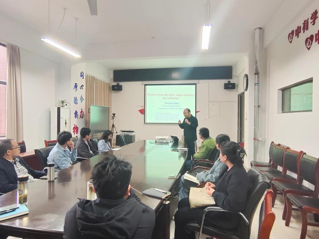 重离子碰撞早期造成的极端环境可以产生夸克-胶子等离子体,同时在非对心碰撞的情况下,高速运动的重离子会产生极强的磁场,目前对于磁化夸克-胶子等离子体的性质研究引起人们的广泛兴趣。王昕杨老师在报告中重点介绍了非对心重离子碰撞早期产生的直接光子的实验结果,对他近年来发表于Phys.Rev.D和EPJC的系列文章中关于在磁化等离子体中产生光子的理论研究成果进行了分析总结。随后对磁化等离子体相关物理问题提出了他自己的见解和展望。最后同与会人员进行了深入的讨论和交流。